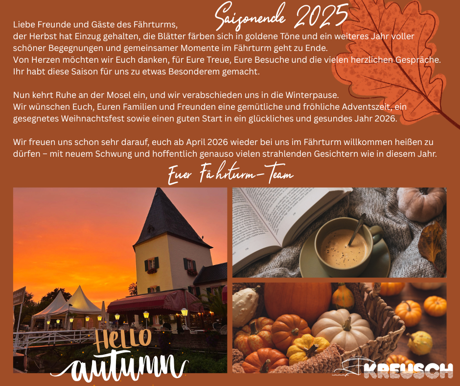 Last but not least sorgen wir im Restaurant „Zum Fährturm“ für Ihr leibliches Wohl.