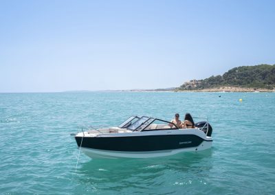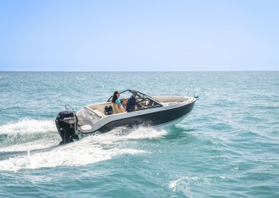 Selten passt die Beschreibung „klein, aber fein“ so genau auf ein Boot. Mit einer Gesamtlänge von 5,33 Metern ist dieses Boot das kleinste in unserer Bowrider Familie. Mit seinem großen Kraftstofftank und seinen kraftvollen Motoren weiß das Activ 555 Bowrider über sich hinaus zu wachsen. Zudem kann die Cockpit-Sonnenlounge in nur wenigen Sekunden aufgebaut werden.