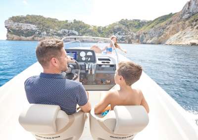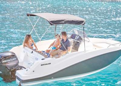 (Bimini, Fusion Stereo mit 2 Lautsprechern, Wasserskimast, verstellbare Bug-Sonnenliege) - Wasserskimast