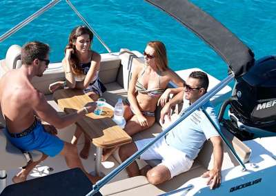 (Bimini, Stereoanlage, Motorbilgen-Abdeckung, GFK Cockpit-Tisch Upgrade, Liegeflächenerweiterung, Esstisch in der Kabine, Kabinenvorhänge, elekt. Bug-Ankerwinde)